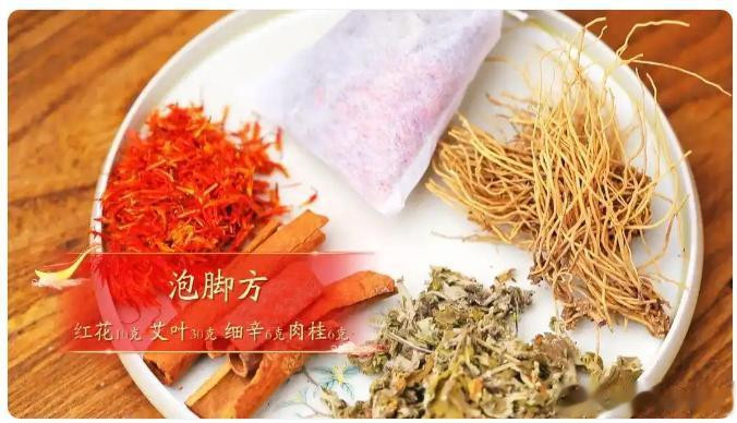 作念法:准备红花10克、艾叶30克、细辛6克、肉桂6克,加水煮沸后,待水温合应时泡脚,边泡边推拿脚部,着力更佳。